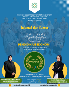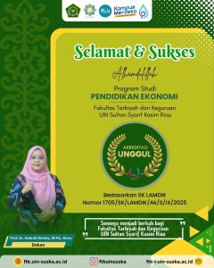Alhamdulillah, kabar gembira datang, Program Studi Pendidikan Ekonomi Fakultas Tarbiyah dan Keguruan Universitas Islam Negeri Sultan Syarif Kasim Riau berhasil meraih Akreditasi Unggul berdasarkan Surat Keputusan LAMDIK Nomor 1705/SK/LAMDIK/Ak/S/IX/2025. Capaian ini menjadi bentuk pengakuan resmi atas mutu dan kualitas penyelenggaraan pendidikan tinggi yang dilaksanakan oleh program studi, sekaligus menegaskan posisi Pendidikan Ekonomi sebagai salah satu program studi unggulan di lingkungan universitas.